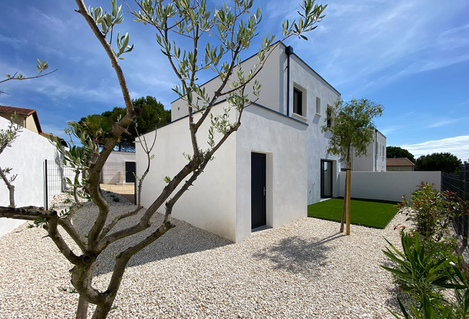 Située dans un quartier résidentiel très calme de la commune de Calvisson, à la sortie du village direction Sommières, le Carré Vaunage s’inscrit dans la continuité de sa réalisation très contemporaine de l’avenue de Lattre de Tassigny avec un mélange de toiture terrasse et toitures à 4 pans pour venir valoriser et s’harmoniser avec les constructions avoisinantes.